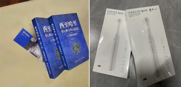 禮品:電動牙刷、書籍以及最美家庭牌子